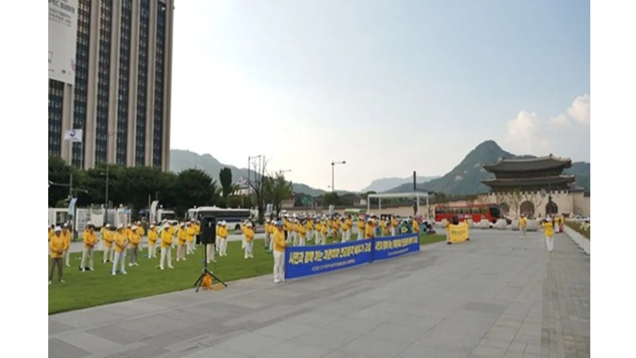 Ngày 28 tháng 7 năm 2025, các học viên đã tổ chức một buổi trình diễn các bài công pháp quy mô lớn trên quảng trường Gwanghwamun ở Seoul, Hàn Quốc, để giới thiệu về Pháp Luân Đại Pháp. Nhiều khách qua đường đã dừng lại xem, một số chụp ảnh, ghi hình và một số tham gia tập theo động tác của các học viên. Nhiều người chủ động nhận tờ thông tin về Pháp Luân Đại Pháp.