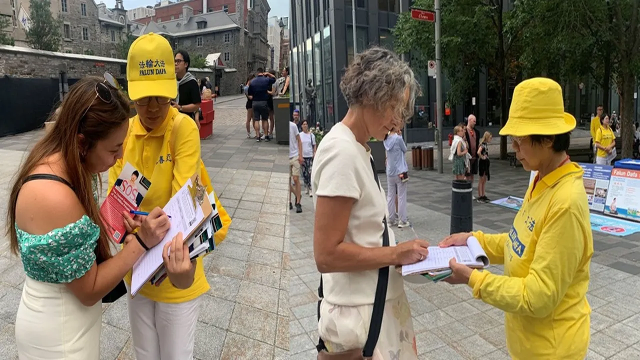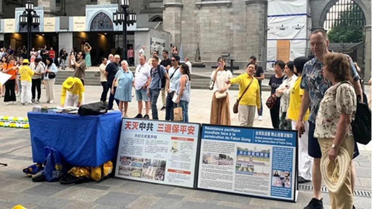 Place d’Armes là một địa danh du lịch nổi tiếng ở Montreal. Nhiều đoàn khách du lịch đã dừng lại để xem các bảng trưng bày và lắng nghe các bài phát biểu của học viên Pháp Luân Công. Một số người đã rơi lệ vì xúc động, và nhiều người đã ký bản kiến nghị để ủng hộ nỗ lực của các học viên nhằm chấm dứt cuộc bức hại.