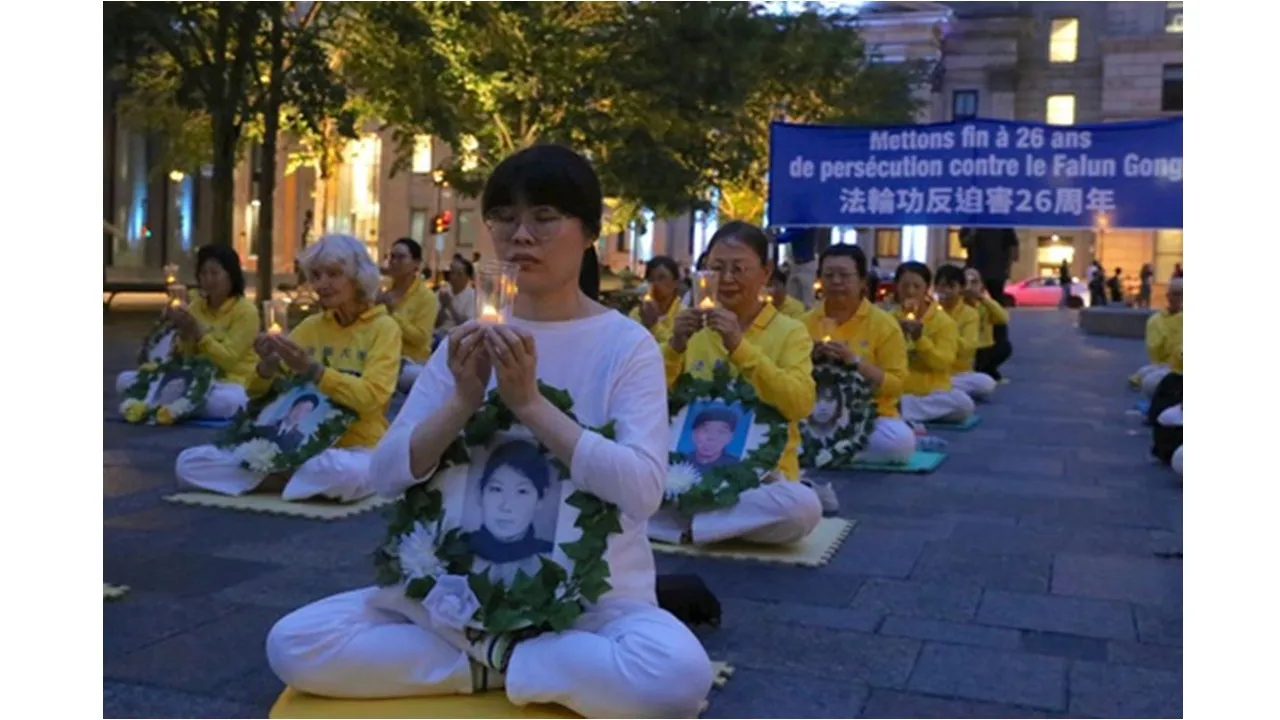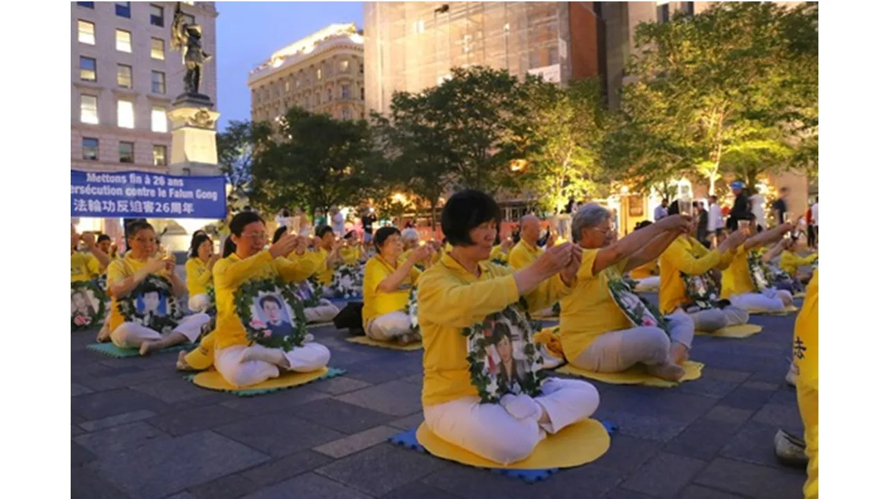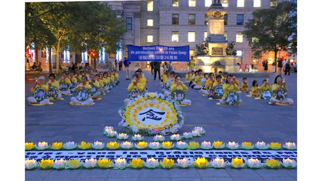 Tối ngày 19 tháng 7 năm 2025, các học viên Pháp Luân Công đã tổ chức lễ thắp nến tưởng niệm tại Place d’Armes ở Montreal, Canada, để tưởng niệm các học viên đã qua đời trong cuộc bức hại của Đảng Cộng sản Trung Quốc (ĐCSTQ) và kêu gọi chấm dứt sự tàn bạo kéo dài suốt 26 năm qua.