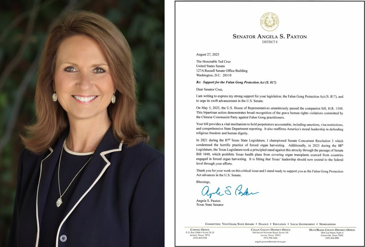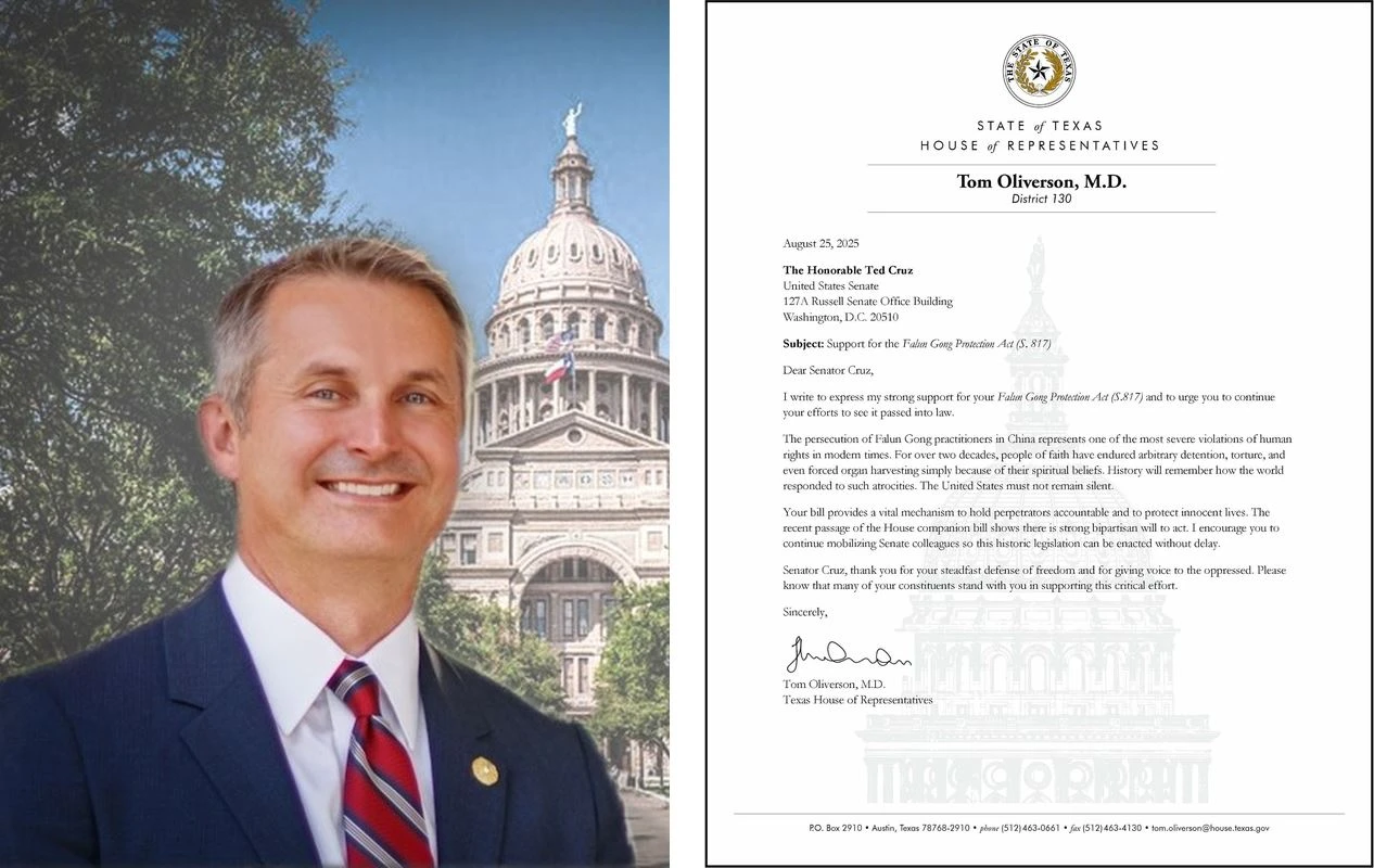 “Trong hơn hai thập kỷ qua, những người có tín ngưỡng phải chịu bắt giữ tùy tiện, tra tấn và thậm chí là cưỡng bức thu hoạch nội tạng chỉ vì đức tin của mình. Lịch sử sẽ ghi lại cách thế giới phản ứng trước những tội ác này. Hoa Kỳ không được giữ im lặng” – Tiến sỹ Tom Oliverson, Lãnh đạo Đa số của Hạ viện Texas và là Hạ nghị sỹ cấp cao từ Khu vực bầu cử số 15 viết trong thư.