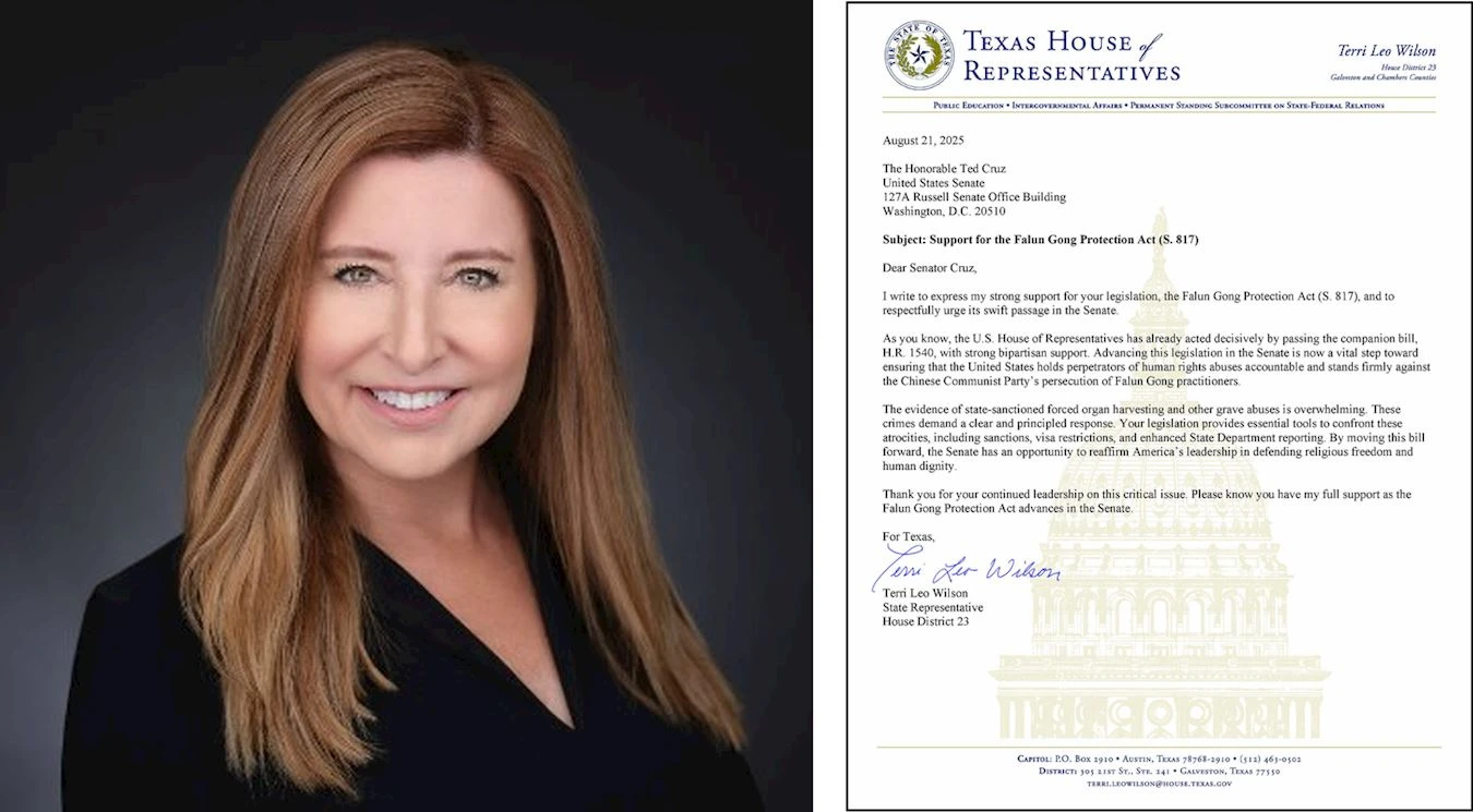 “Việc thúc đẩy dự luật này tại Thượng viện hiện là một bước đi quan trọng để đảm bảo Hoa Kỳ buộc những kẻ phạm tội phải chịu trách nhiệm và kiên quyết phản đối cuộc bức hại của ĐCSTQ đối với các học viên Pháp Luân Công” – bà Terri Leo Wilson, Hạ nghị sỹ Khu vực bầu cử 15 của Hạ viện Texas viết trong thư.
