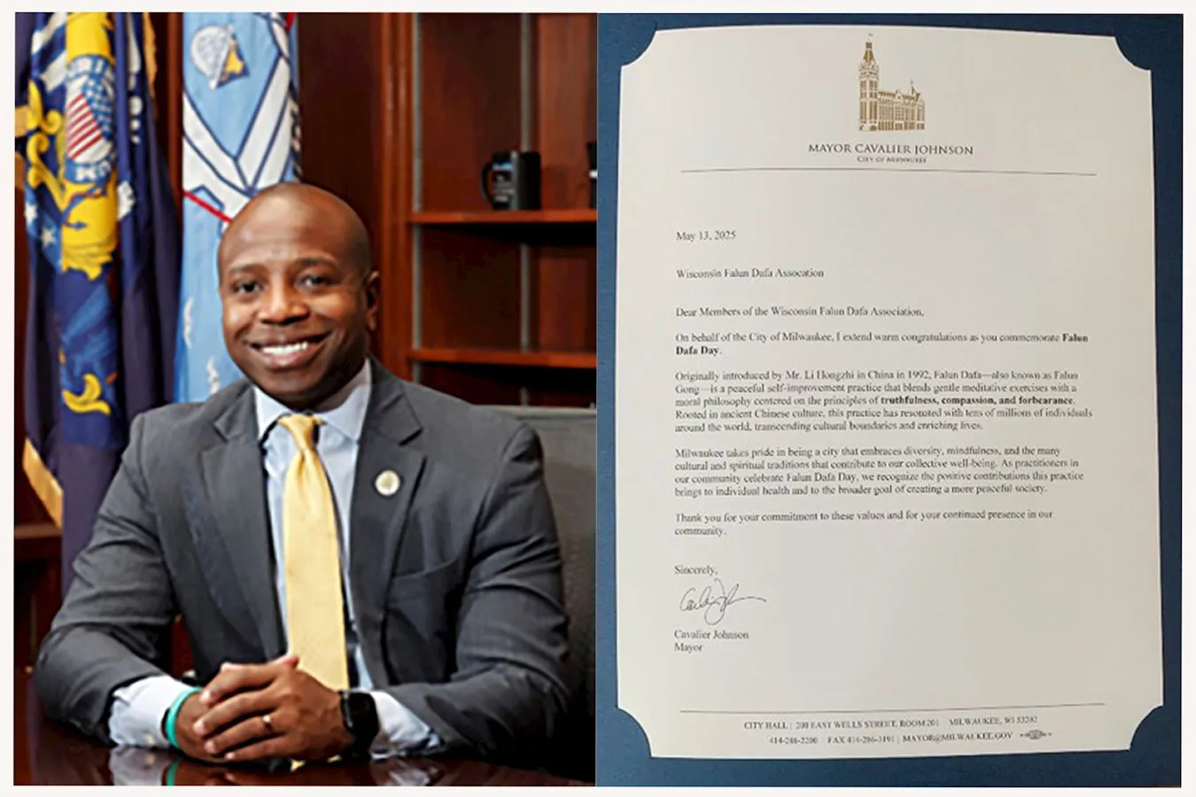 Thị trưởng Cavalier Johnson của Milwaukee tuyên bố rằng lá cờ ‘Ngày Pháp Luân Đại Pháp’ sẽ được kéo lên trước Tòa thị chính Milwaukee trong hai tuần. Ông cũng gửi thư chúc mừng tới các học viên.