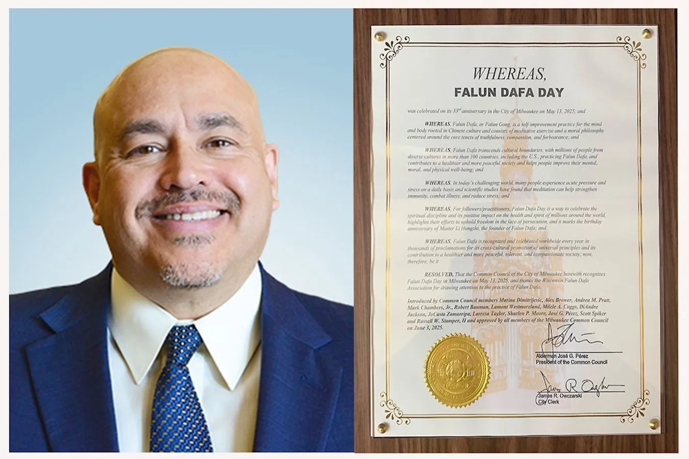 Ông Jose G. Perez, Chủ tịch Hội đồng Thành phố Milwaukee và các thành viên khác của hội đồng đã cùng ban hành một nghị quyết mừng Ngày Pháp Luân Đại Pháp. Nghị quyết nêu: “Hội đồng Thành phố Milwaukee theo đây công nhận ngày 13 tháng 5 năm 2025 là Ngày Pháp Luân Đại Pháp ở Milwaukee và cảm ơn Hiệp hội Pháp Luân Đại Pháp Wisconsin đã giúp công chúng chú ý đến môn tu luyện Pháp Luân Đại Pháp”.