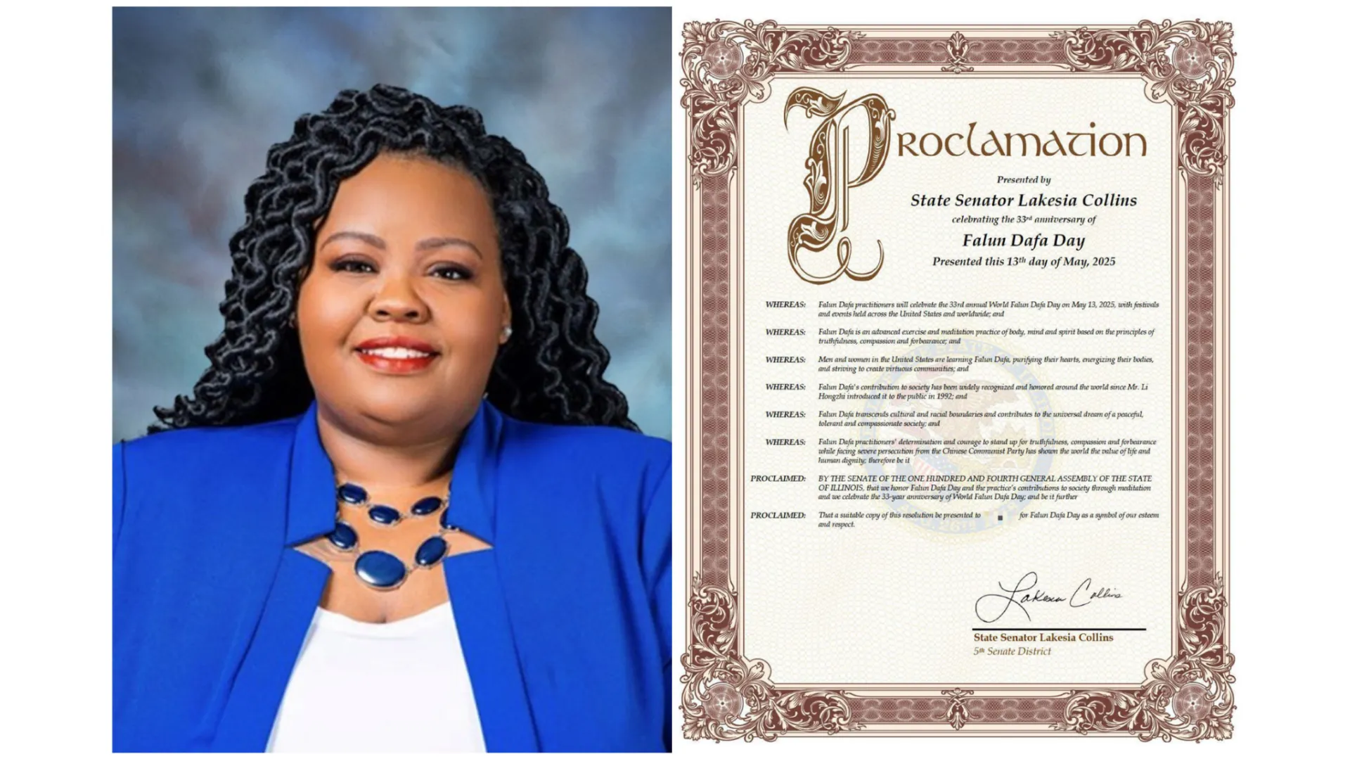 Vào tháng 5 năm 2025, Thượng viện bang Illinois đã thông qua một tuyên bố do Thượng nghị sĩ Lakesia Collins khởi xướng để kỷ niệm 33 năm ngày Pháp Luân Đại Pháp được hồng truyền ra công chúng.